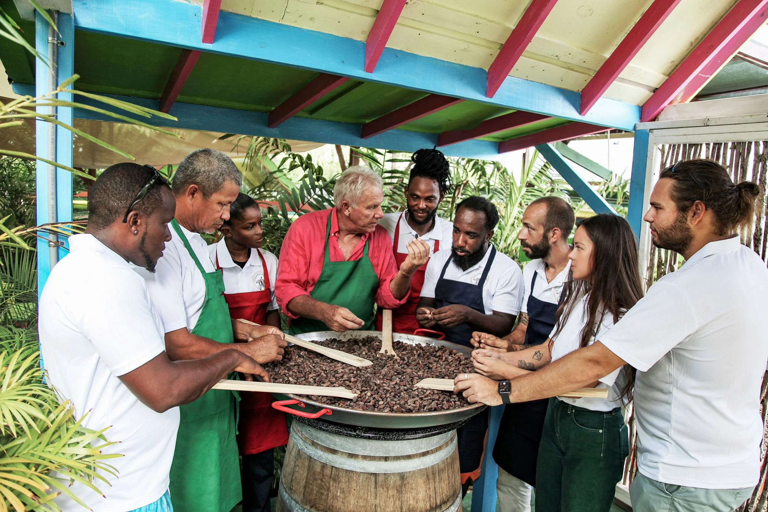 Here at Antigua House of Chocolate we benefit from an artisan, yet rustic, approach to making organic and healthy chocolate. We are proud to support our industry friends across the Caribbean. Grinding, roasting, stirring, tempering…